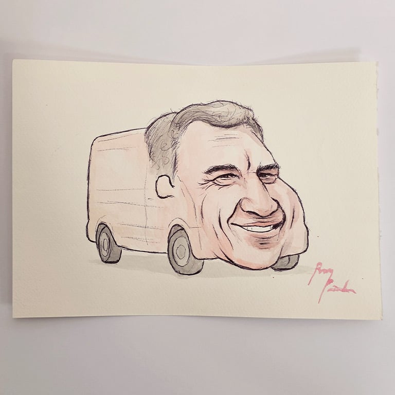 Jeffrey Epstein Transit Van original watercolour painting by Rory Paints.