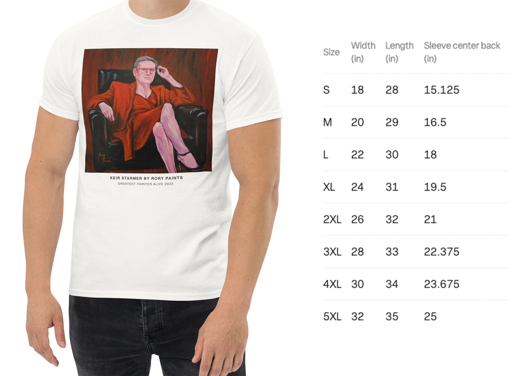 Express your unique sense of style and humor with this bold Gildan 5000 cotton t-shirt featuring "Keir Starmer in Red Dress", an imaginative and striking painting by the talented artist Rory Paints. Printed on a classic, durable Gildan 5000 tee, this design captures a provocative and unexpected portrayal of Keir Starmer in vibrant hues, set against a detailed, artistic backdrop.