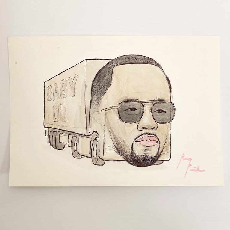 P-Diddler Baby Oil Truck original watercolour painting by Rory Paints.